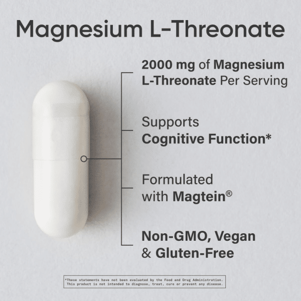Forme innovante de magnésium pour soutenir la mémoire, la concentration et le sommeil. Formule non-OGM, sans gluten ni gélatine. Fabriqué aux États-Unis avec la technologie Magtein® pour une absorption cérébrale supérieure. 👉 3 gélules par jour avec les repas.