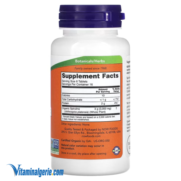NOW Foods, Spiruline bio, 500 mg , 100 comprimés