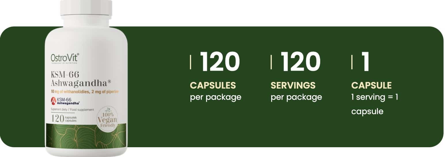 OstroVit KSM-66® Ashwagandha VEGE est un complément alimentaire végétarien contenant un extrait breveté de racine d’ashwagandha (Withania somnifera), standardisé à 5 % de withanolides. Cette plante adaptogène est reconnue pour aider l’organisme à mieux gérer le stress, améliorer les performances mentales et physiques, et soutenir l’équilibre général.